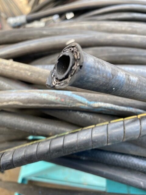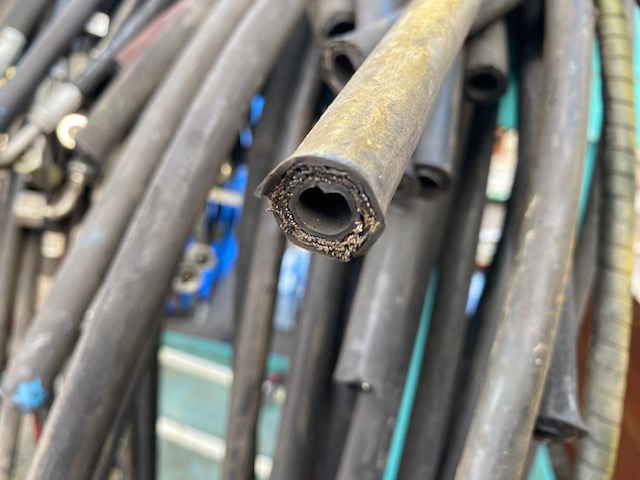 貯めに貯めまくって、取り外して保管してあった油圧ホース。