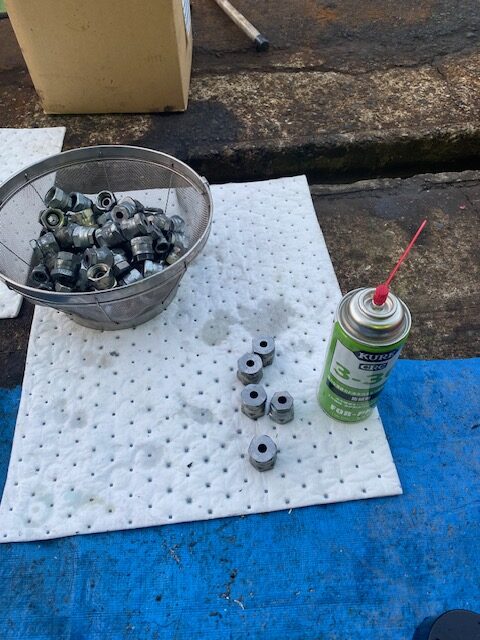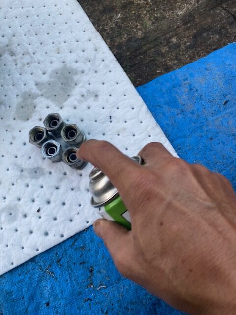その後、コンプレッサー空気で水を吹き飛ばしてから、ホワイトガソリンやパーツクリーナーで吹き飛ばしてほぼ完全に乾燥させてから使ってます。口金の錆び状態とゴムがそれほど硬化してなければ、まあ使ってもいいか!!って割り切れるんですが、やはりどうせなら新品つけたいし、外してすぐ付け直すとき以外は、やはり新品のチョイスがほとんどです。