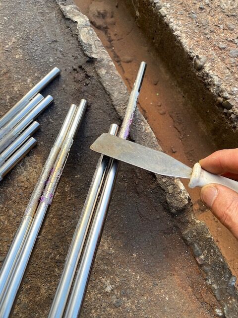 現場ではいろんな状況がありますが、なるべく丁寧に扱いますが、結構な頻度で保護管が曲がっちゃったりしてしまうので、定期的に補充して新調してます。