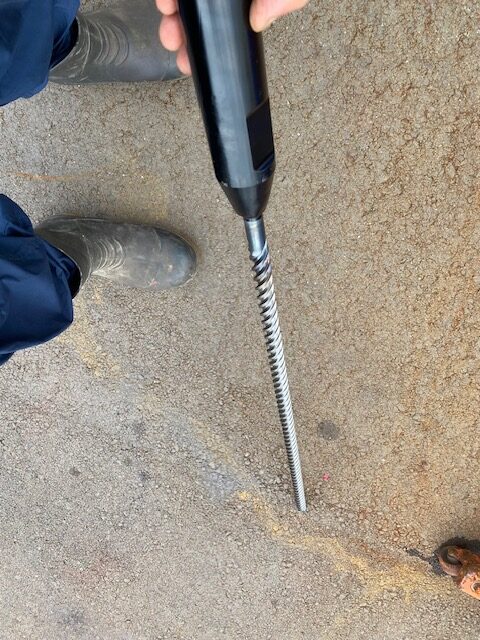 以前にも紹介した、土壌ガス用、ロッドにくっ付けたロングドリル。