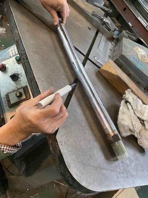 奴らは炙りながら、旋盤で回しながら確認して、物の見事にどストレートに復活させてます。パキスタン野郎を見習って先生と2人で、片目閉じてじーーーと眺めて確認しながら、ですが、これまた難易度高いわ!!
