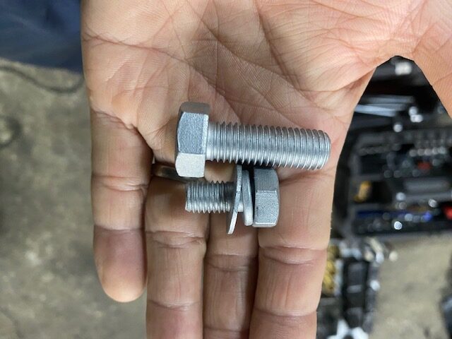 特に日立の8.8強度のハイテンワッシャー組み込みのセムスボルトは、純正品でしか入手できません。しかもめっちゃ高額です。(この内容、何回も言ってる気がしますが、大好きで市販品を探しまくったのですが、ダメでした。😂)