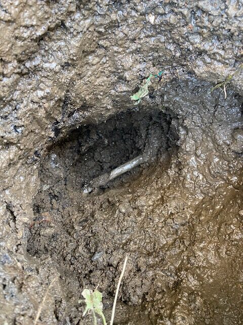 さて、大事にならない規模のトラブルでしたので、いつも可能な限り自社で対応します。やはり一人では何も出来ないもので、色々力を借りるのが、いつもの仲間。何とか止水栓を見つけて当日中に下準備までは自分でこなして、翌日ユンボーを運び入れて、2人で復帰。