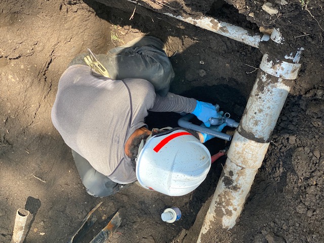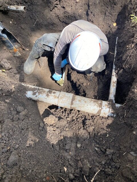 現地の方々に、大変ご迷惑をかけてしまいました。そして止水栓が見つからん。 皆めっちゃ探してくださいました。 ECOの排土板でひっくり返したり、現地の方も総動員で探して頂き、やっと見つけました。ありがとうございます。