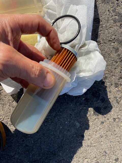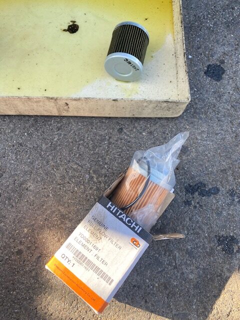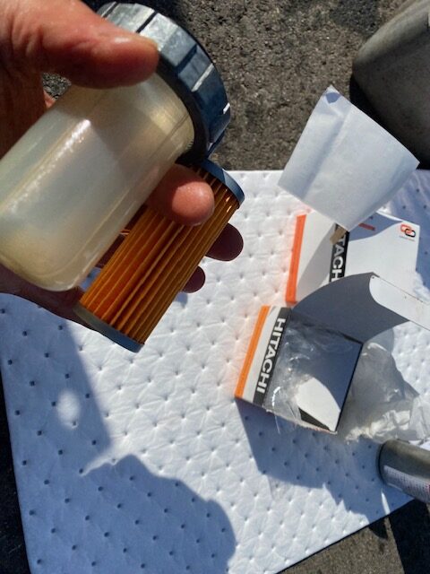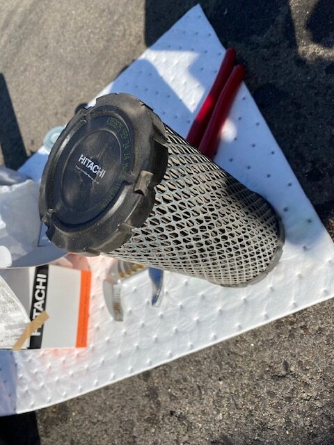 作動油系のパイロットフィルターのみは交換しておきます。結構汚れてます。