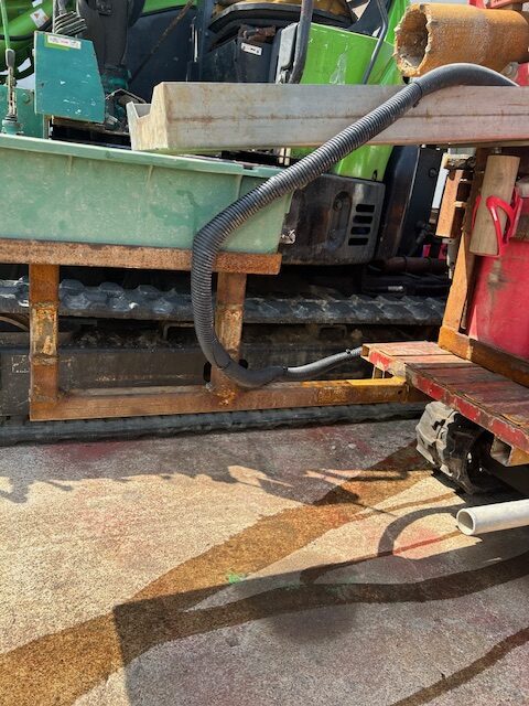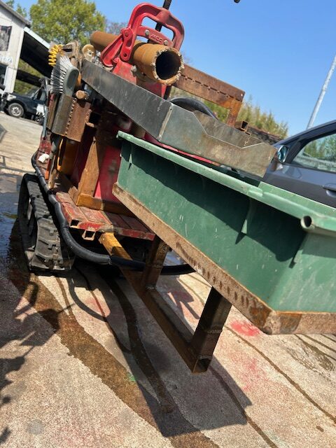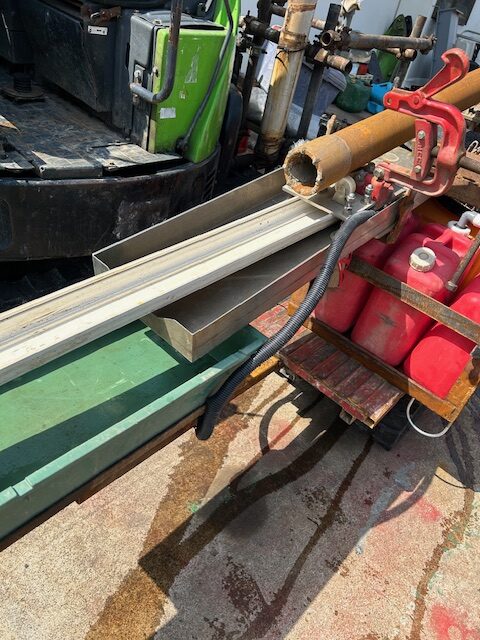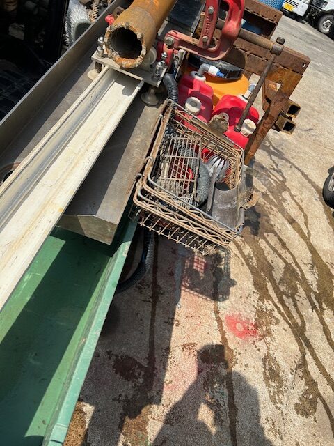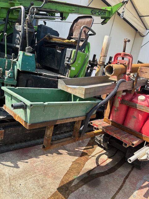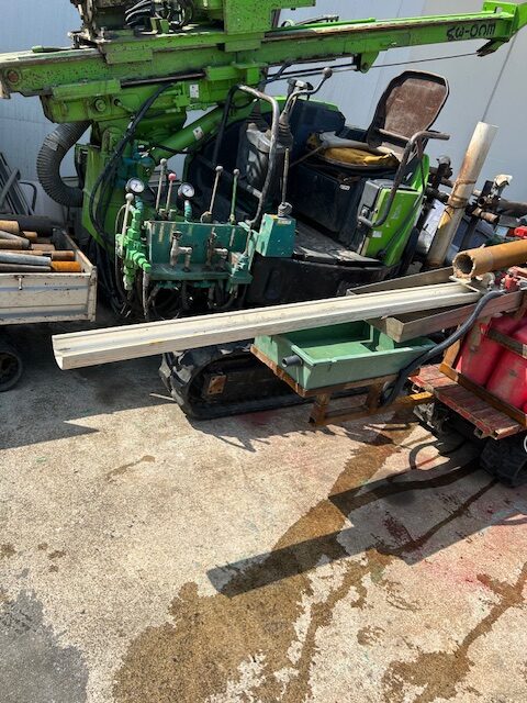 当時から結構工夫が多く(自慢^^)コア出しにコンプレッサーの空圧とフットスイッチを巧みに使用したり、管がクルクル回せながらバイスを挟めたり、泥廃液を循環して再利用してみたり、桶も全部地面から浮かせたり、勿論コア整理、観察台にしてみたり…。ドロ避けの流し台カバーをワンタッチで取り外し可能なステンレス製板を作ったり。 やはり簡易なクレーン付けてみたり、ケーシングやロッドを収納出来たり、 流し台を折りたたみにしたり、まだまだ伸びシロは豊富だね^^