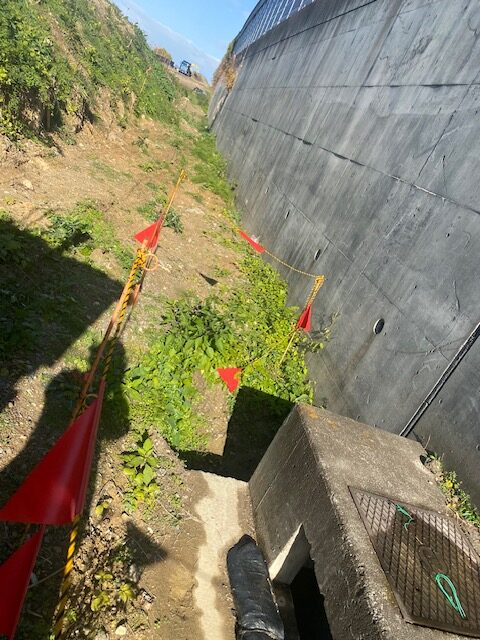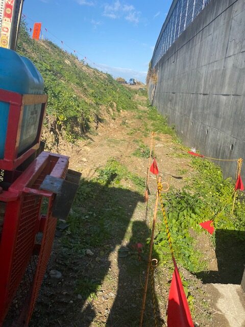 今回も雨上がりのヌカルミで、見た目はさほど問題なさそうな調査場所。ですが地味にずっと壁際に傾斜してて、しかもふにゅふにゅの地面。ゴロゴロ石も多いし…。