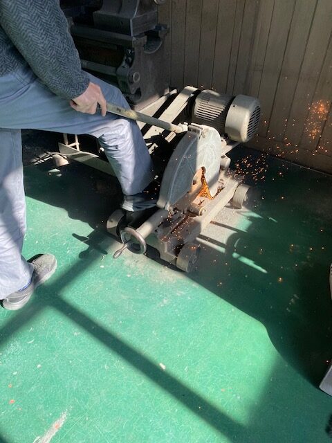 やるなら本気でやってみよう!!って早速朝一番、高速カッターでいざ切断。