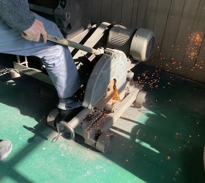 やるなら本気でやってみよう!!って早速朝一番、高速カッターでいざ切断。