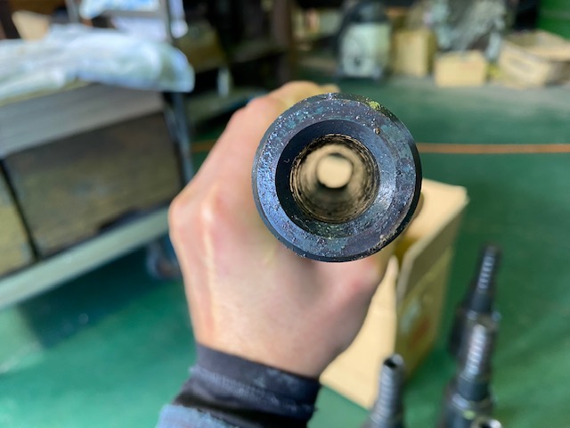 先生から、連絡頂きアダプター復活品 第1号 完成いたしました。バリで塞がってたセンターの水抜き穴貫通、圧接後のバリ削り、そしてレンチカットのフライス加工。