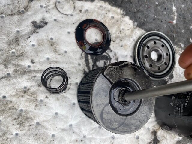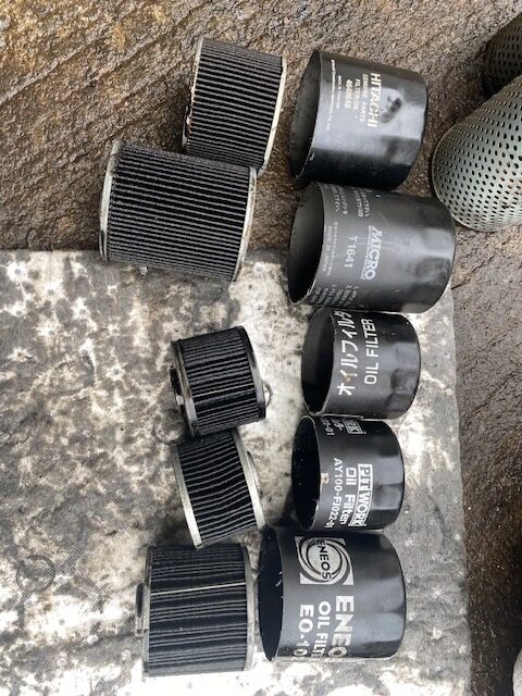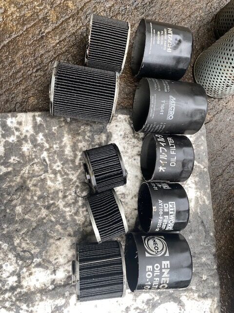 オイルフィルター、廃棄方法が決まらず、ずっと溜まってたので、捨てるついでに分解した!!