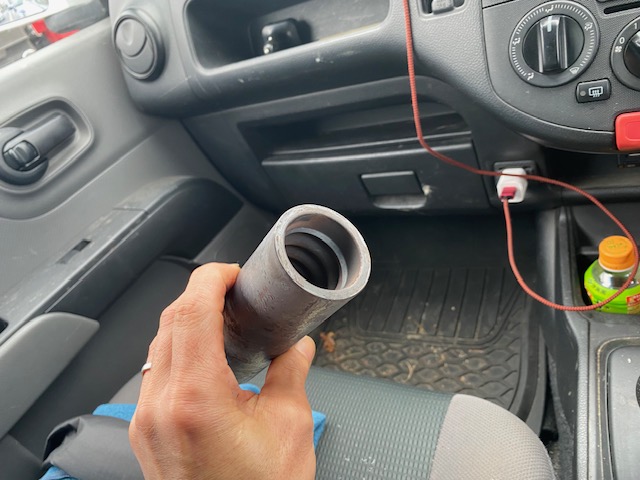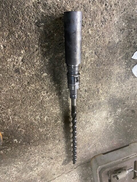 SDSマックスシャンクアダプターも、最高な出来上がりで、ぐちゃーーって圧接してくれました。これはお互いが異素材同士だから、強度が少し不安です。オンボロハンマードリルから調達した先端部品は、相当硬そうな素材です。