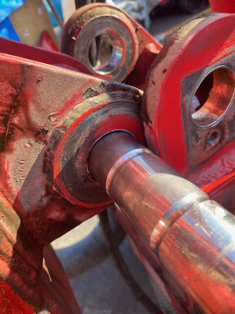 その後、穴位置を合わせていざ、ピンを怒ついて最後、貫通直前ですよ!!、逆側で一番端のドライベアリング、