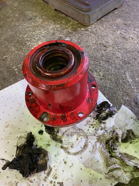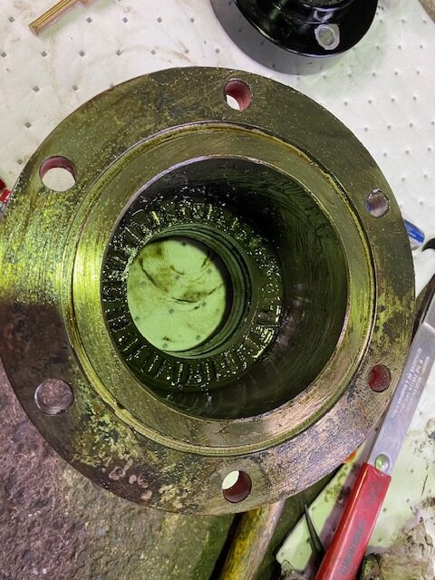 クッソ固まってた、シャンクロッドを外すため、炙り倒し、怒つきまくったベアリングケース、一応、内部の状態を確認したところ、スラストローラーベアリングは、ほとんど無傷でしたので、今回はそのままにしておきます。