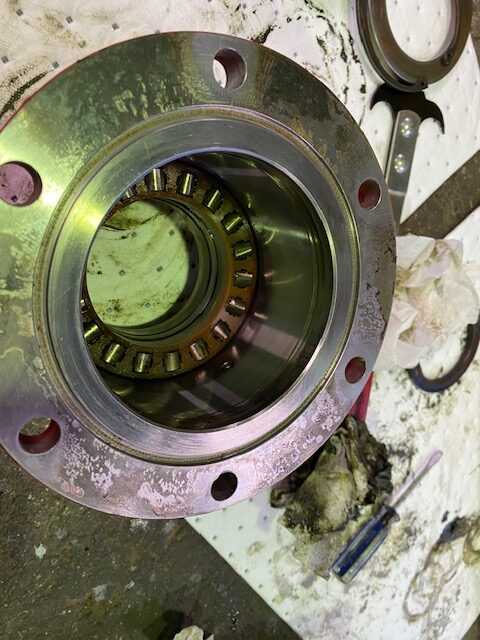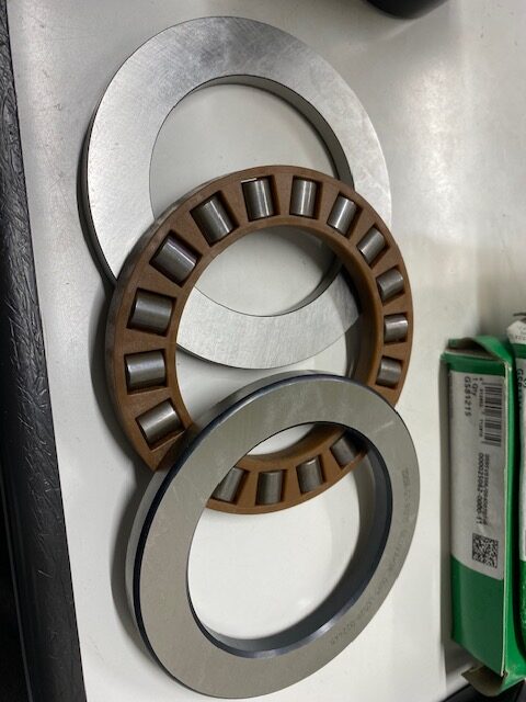 このスラストローラーベアリングの2枚のハウジングは、外すの結構大変なんです。今回は、痛んでないので、やめた方が無難と判断しました。