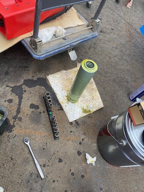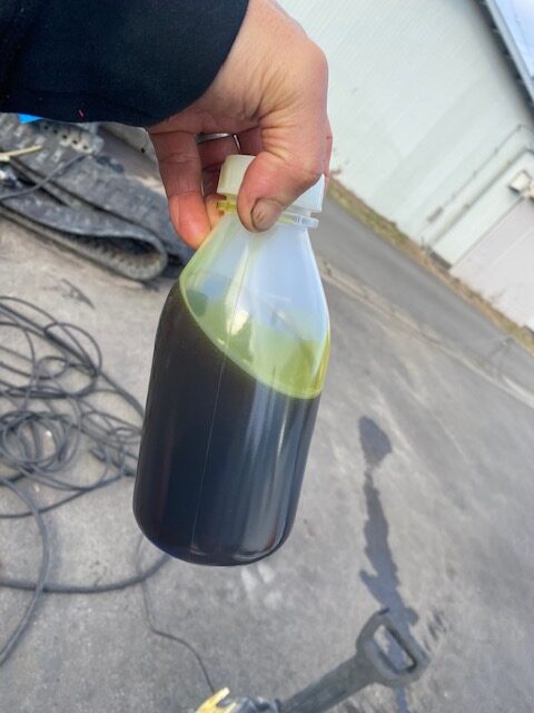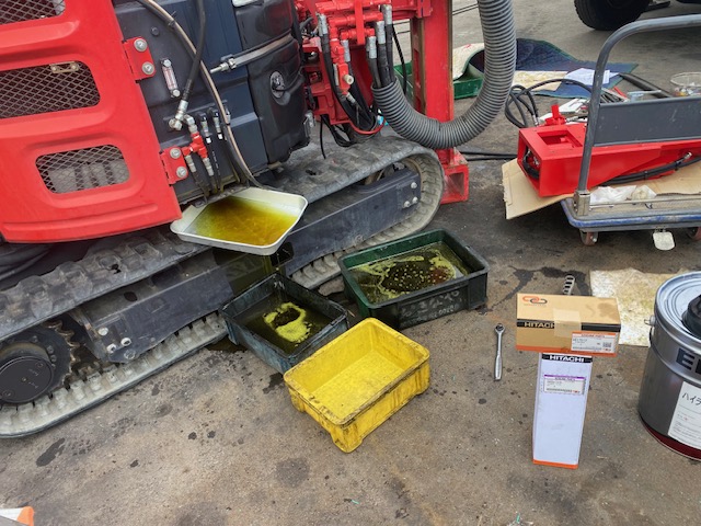 いつももっとバッチイーー鉱物系の交換済み作動油見てる人だったので、そう言ってくれてましたが、今回の3V-3の作動油は、色は結構やばそうな感じです。