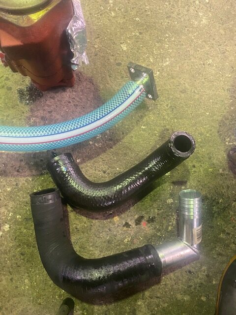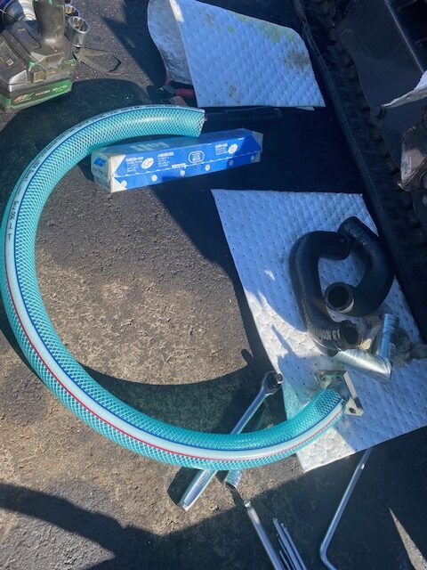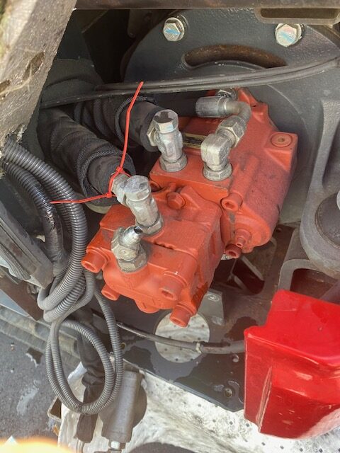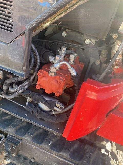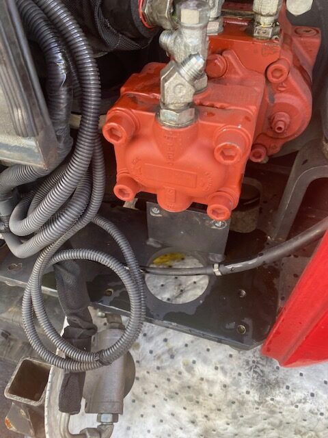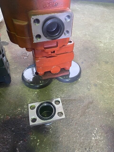 そして、元々の油圧ポンプから、ホース類、全て外して、案の定、残留の作動油で辺りはベトベトですが、なんとか抜き取って…。