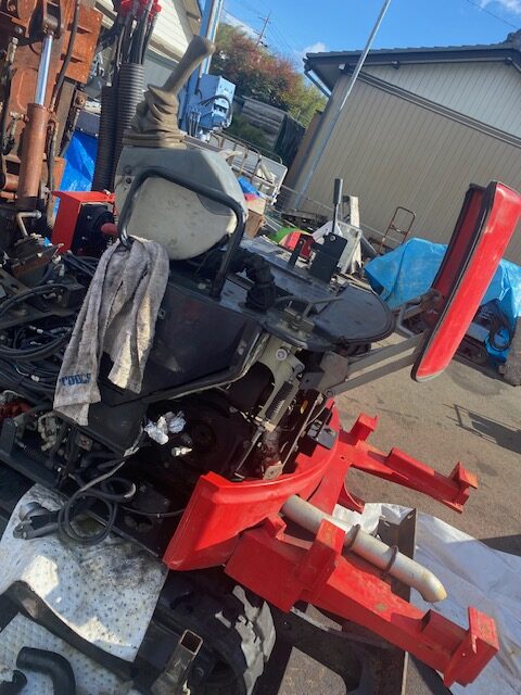 しかも、座席下のボディカバーも撤去…その為には、その間を潜りまくってるハーネスやら、油圧ホース、全部解体しないと持ち上げれません。