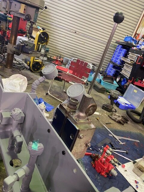 ②御親切に手元での掘削モード時のスライド機能を可能にしてるスタックバルブを設けてくれてるので、最前方まで引っ張るホースが7本も増える。そしてこのホース束もバルブの上に載かっちゃうのです。
