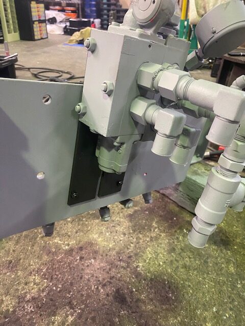 ①逆サイドへ向かう、リーダー中継へのホース束(7本)が、3Vのようにダクトパイプでマシン下部に垂らせない。ので、全部スイングベースピンの隙間(マシンの首)を通過させる必要がある。(よく擦れてホース破れる部分ですよねー。)このホース束、思いっきりタンクブロックとデバーターやプライオリティの上に載かっちゃうのです。