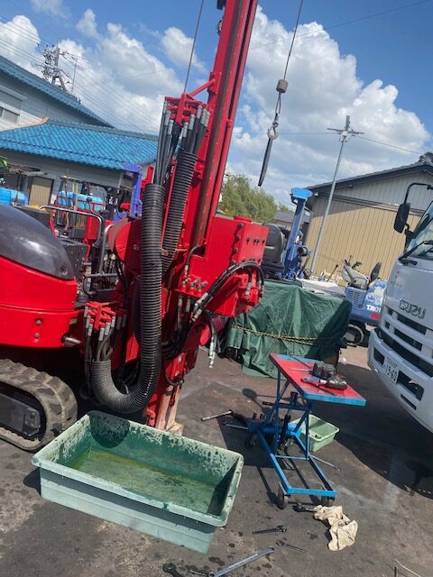③現場で完全オーバーヒート→新品エンジンに載せ替え(大阪港湾現場→因みに現場はどしゃ降り。。。。)