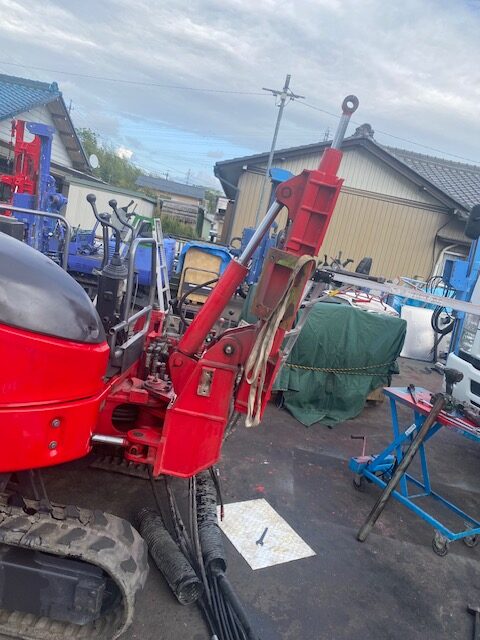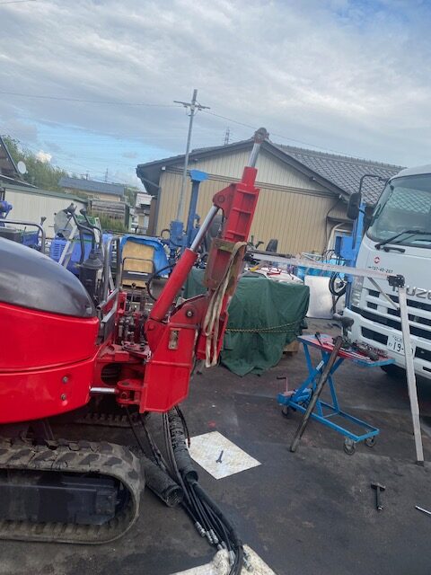そしてフロントは、当時スイングベース→スライドベース→リーダー→フィードシリンダー、は外さずにそのまま、ダークスカーレット(赤)に塗装しちゃってたので、