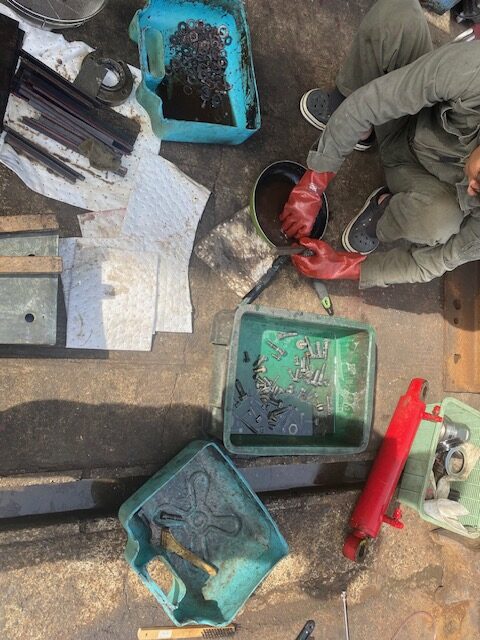 ②マシン底に丸2日潜っっりパなしによる走行モーター修理(真夏のアスファルト)→現場撤退まで→これもまたまた、逃げるように退散!!!!🙂